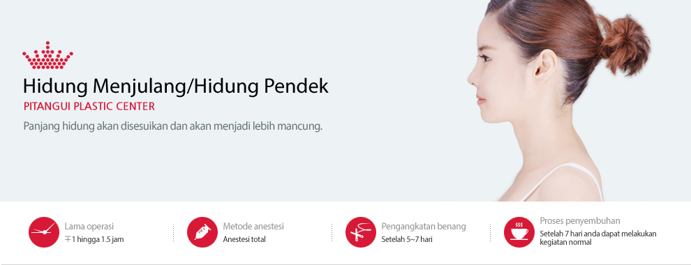 Pada kondisi ini melalui operasi rhinoplastik, tulang hidung bagian pangkal akan ditinggikan, maka hidung pun akan tampak panjang.